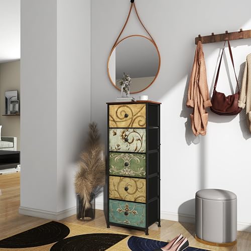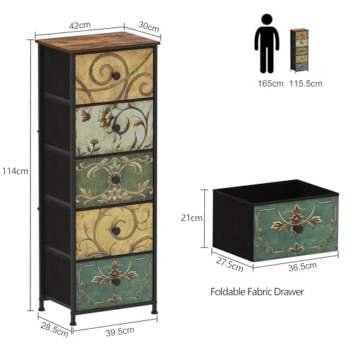 Ben je op zoek naar een opbergoplossing die niet alleen functioneel is, maar ook je interieur een boost geeft? Deze VEDECASA comodekast met 5 stoffen laden is een echte blikvanger. Met zijn boheemse en industriële look past hij perfect in de slaapkamer, woonkamer, hal of zelfs de kinderkamer. Het smalle, hoge ontwerp zorgt ervoor dat je ook in kleinere ruimtes genoeg opbergruimte hebt zonder dat het teveel plek inneemt.