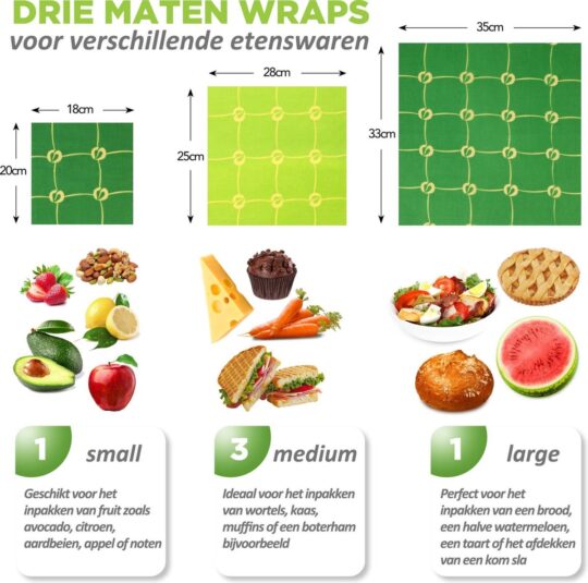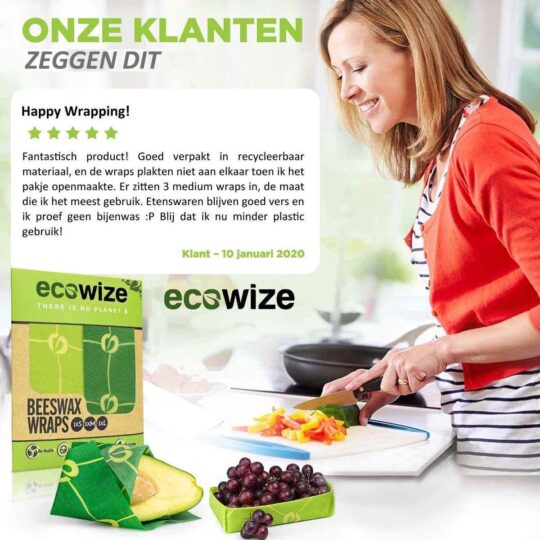 Deze Bee Wraps komen in verschillende maten (1S, 3M, 1L), dus je hebt altijd de juiste grootte bij de hand. Gebruikers vinden het superhandig dat ze zo makkelijk vormen naar elk oppervlak, al moet je even wennen aan het iets plakkerige gevoel. Een kleine tip: ze zijn niet geschikt voor rauw vlees of de vaatwasser.
