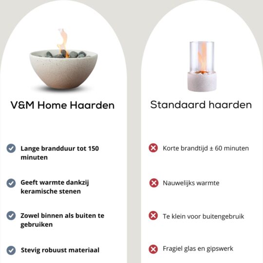 Wat deze V&M Bio Ethanol Tafelhaard zo fijn maakt, is het gebruiksgemak. Je vult hem simpelweg met bio-ethanol, steekt hem aan en klaar ben je. Geen gedoe met hout of as opruimen. Bovendien is hij veilig in gebruik dankzij de stabiele basis en hittebestendige materialen. Gebruikers waarderen vooral de warme gloed en hoe hij een ruimte direct gezellig maakt.