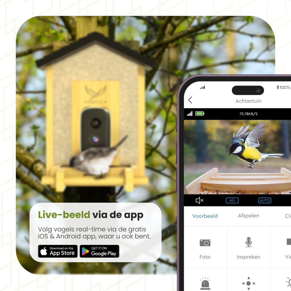 De camera levert scherpe video en audio, zodat je elk tjilpje hoort. Gebruikers zijn vooral blij met de eenvoudige installatie en hoe de app je direct een melding stuurt bij beweging. Het voelt alsof je een natuurdocu in je eigen achtertuin filmt! Hieronder de belangrijkste specs: