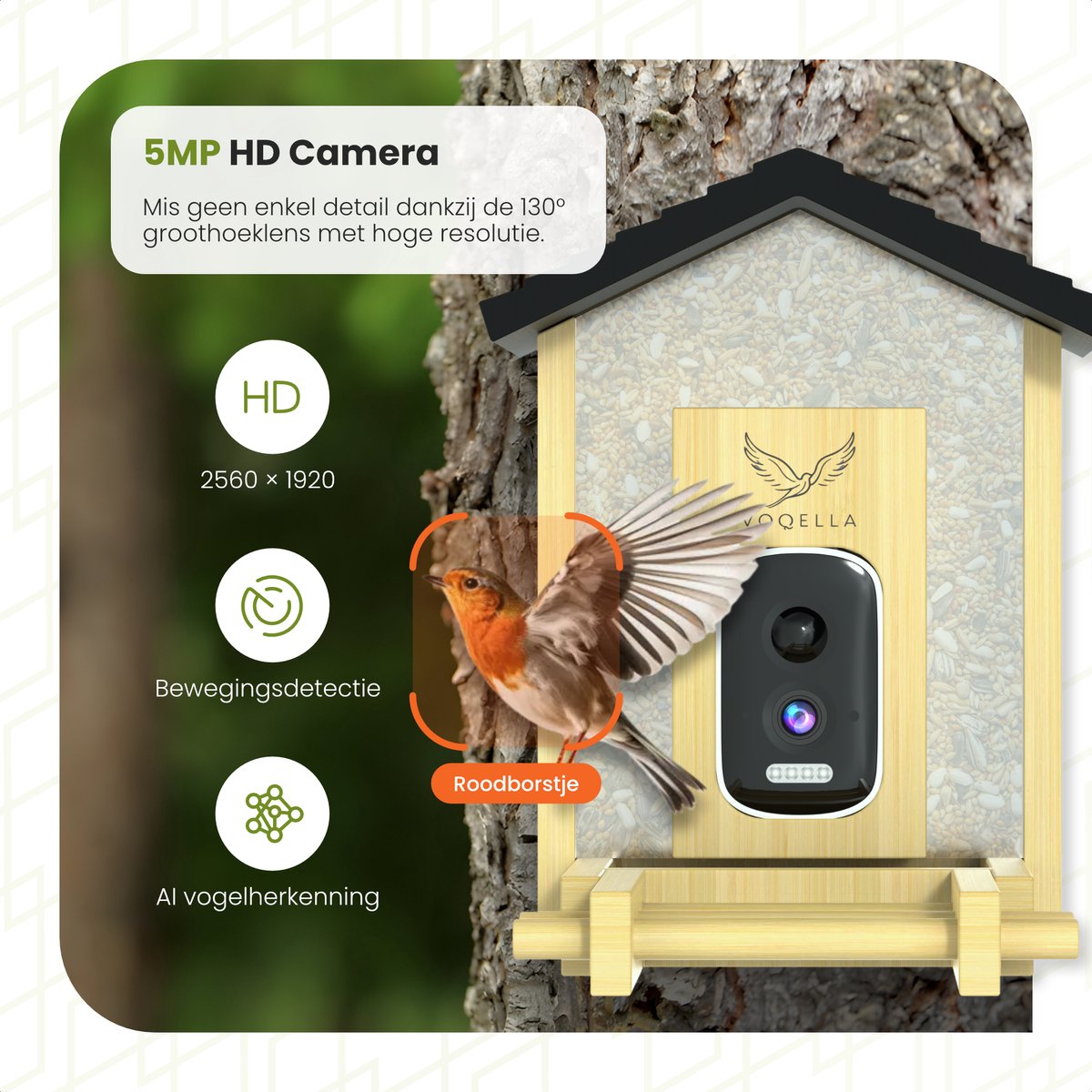 Ontdek het Voqella® vogelvoederhuisje met camera en zonnepaneel. Live video & audio van vogels in je tuin! Bestel nu bij Trending.nl!