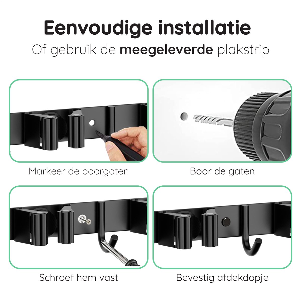 Wat deze gereedschapshouder zo fijn maakt, is de eenvoudige installatie. Dankzij de zelfklevende 3M-tape plak je ‘m zo aan de muur zonder te boren. Gebruikers vinden vooral het draagvermogen en de grip van de houders een pluspunt: je gereedschap blijft stevig hangen, ook als het wat zwaarder is. Een echte ruimtebespaarder!