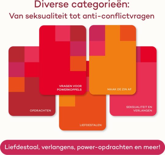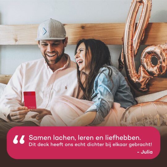 Dit kaartspel is echt een eye-opener. In het dagelijks leven vliegen de dagen voorbij met werk, telefoon en Netflix, en voor je het weet praat je alleen nog over boodschappen en planningen. Met deze kaartjes maak je bewust tijd voor elkaar. Ik heb het cadeau gedaan aan mijn zoon die net getrouwd is en aan mijn dochter die al een jaar samenwoont. Ze vinden het allebei fantastisch en spreken nu elke week een avond af om samen een paar kaartjes te doen. Het past ook perfect bij het boek “De 5 talen van de liefde”. Kortom: een kleine investering met grote impact op je relatie!