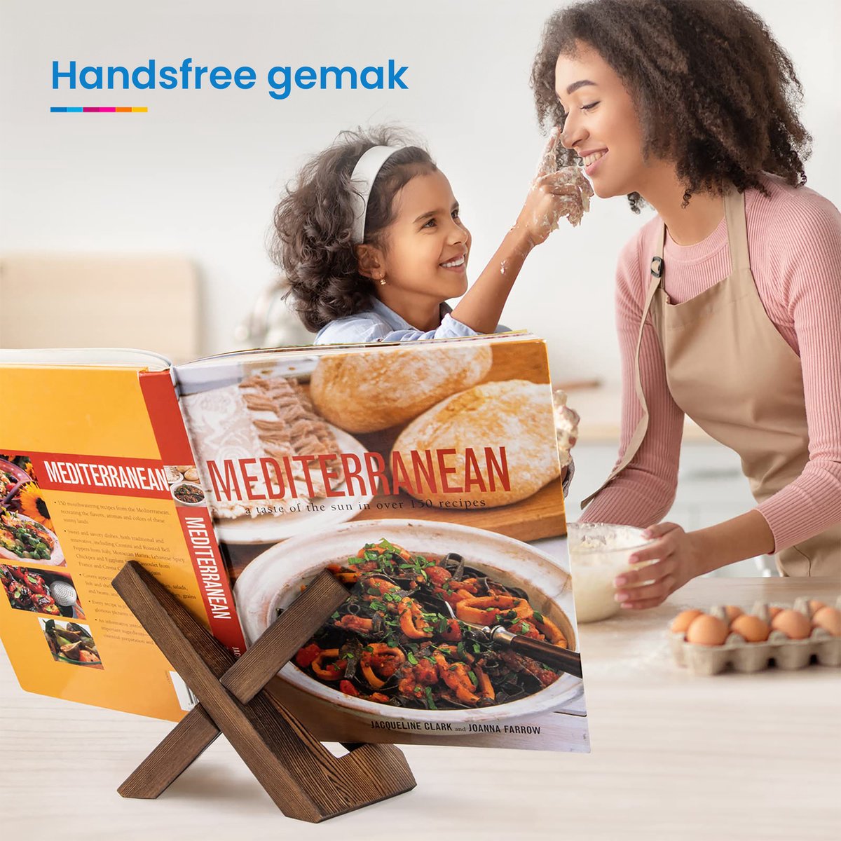 Ben je het zat om je boek steeds dicht te zien klappen terwijl je leest of kookt? De YONO Luxe Boekenstandaard Hout is dé oplossing. Deze stijlvolle boekenhouder houdt je pagina’s netjes open, zodat jij je handen vrij hebt. Gemaakt van hoogwaardig hout, past hij in elk interieur en is hij stevig genoeg voor zelfs de dikste kookboeken.