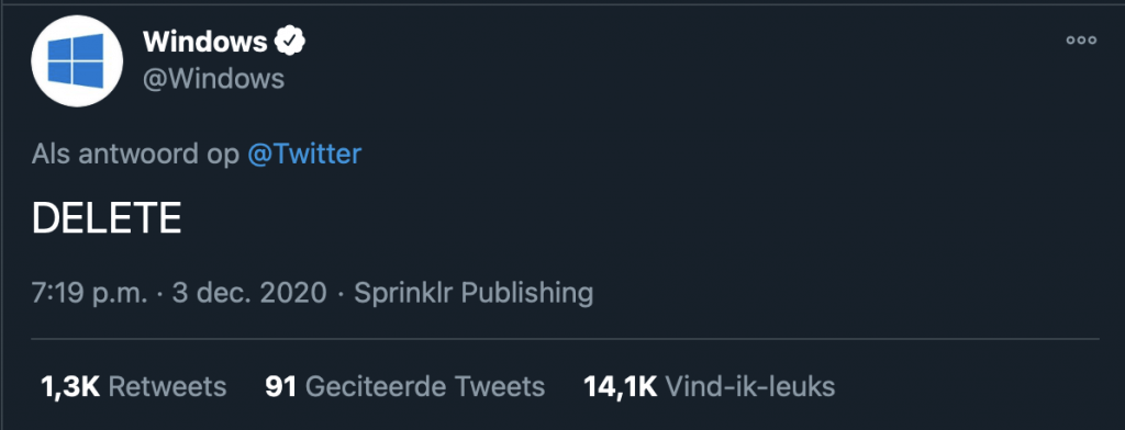 Ieder jaar, in de maand december, vraagt Twitter om iets te delen van het afgelopen jaar. Vorig jaar ging het om de 19 leukste tweets van dat jaar die gedeeld konden worden met het account van het sociale medium. Dit jaar vraagt Twitter haar volgers om 2020 samen te vatten in één woord. De reacties van verschillende bedrijven op deze tweet zijn fantastisch.