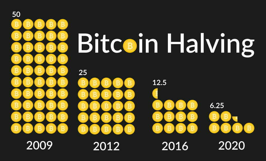 In het begin van de Bitcoin, kreeg een Bitcoin miner elke keer wanneer hij een blok aan de blockchain had toegevoegd, 50 Bitcoins. Dit was toentertijd niet veel, omdat de Bitcoin op dat moment nog niet veel waard was. Omdat deze waarde continue stijgt, hebben ze besloten om bij elke 210.000 nieuwe blocks de beloning te halveren. Dit komt neer op een halvering ongeveer elke 4 jaar. Hierdoor is de beloning anno 2020 nog 6,25 Bitcoins per toegevoegd block. De munt wordt hiermee schaarser, maar de koersstijging zal dit verlies in munten moeten opvangen.