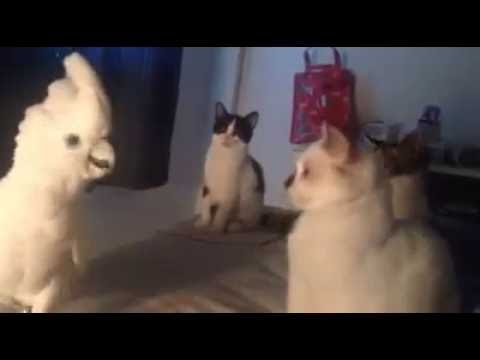 Kaketoes zijn intelligente vogels die jou verraden als de schoonmaakster op je schoot heeft gezeten. Het zijn vogels die schoonmoeders uitschelden voor rotte vis, en dat vinden we uiteraard helemaal geweldig. We nemen deze slimme beesten dus graag in huis, en leren ze trucjes. Maar het wordt helemaal leuk als de overige huisdieren kennis maken met de slimme acties van dit gevederde dier.