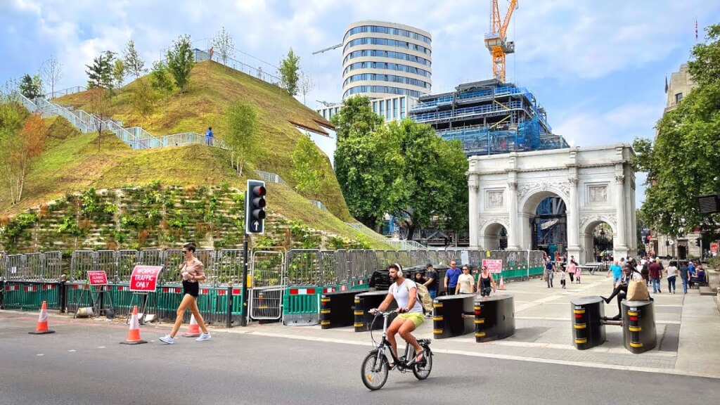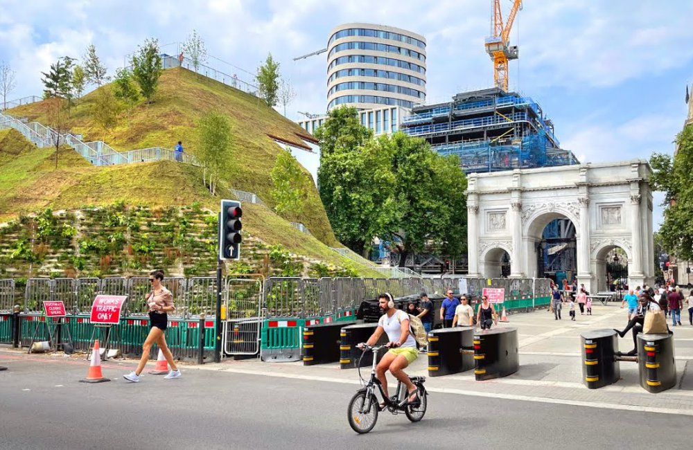 De Marble Arch Mound is op papier nog niet eens zo'n slecht idee. Een mooie groene heuvel in het midden van Londen, met prachtig uitzicht op de stad. Dat klinkt prima, maar de uitvoering was helaas een stuk minder geslaagd. Het eerste probleem was de hoogte van de heuvel. Die is namelijk slechts 25 meter hoog. In Nederland is dat een flinke berg, maar in Londen levert je dat niet bepaald een mooi uitzicht op. De bezoekers konden niet bepaald ver kijken en wat ze zagen (vooral bouwplaatsen, wat groen en een paar hoge gebouwen) gaf ook niet echt een wow-factor. Daarnaast was de heuvel zelf ook niet echt een pareltje, want het groen van het bouwwerk begon al snel bruin te worden en af te sterven. Tsja, dan ben je niet echt een aanwinst voor de stad.