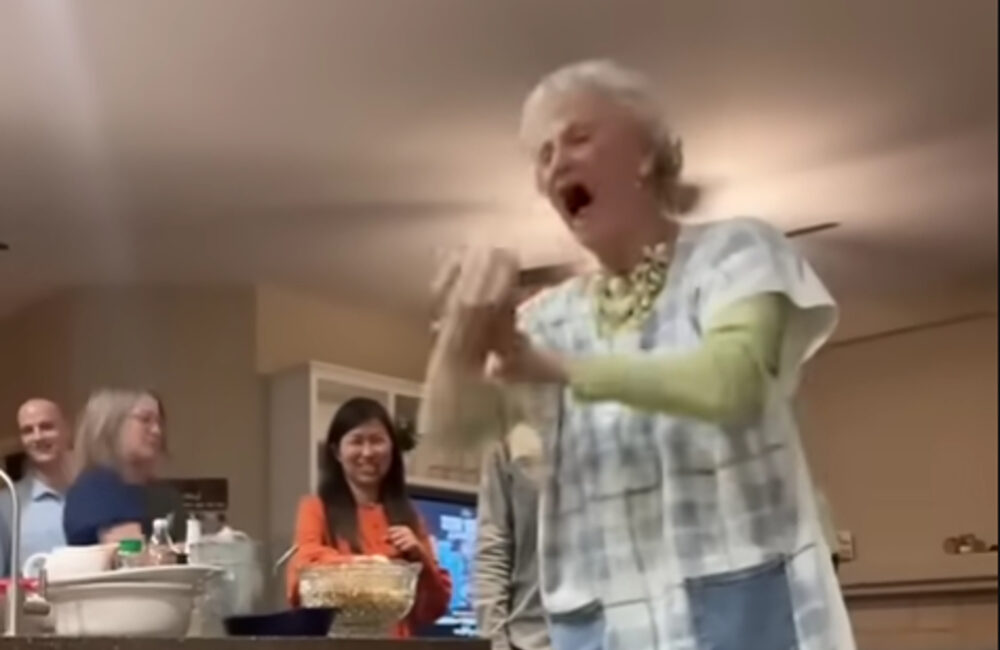 We zijn getuige van een feestje waarbij oma vrolijk meedoet aan een challenge met slagroom. De hele familie wordt gefilmd terwijl ze het trucje in een soort van polonaise dans uitvoeren. Zelfs de kleinkinderen doen mee. Op het moment dat oma het trucje uit moet voeren gaat het niet zoals gepland. De vermakelijke beelden gaan heel het internet over, check ze zelf voor een leuk begin van een nieuwe werkweek.