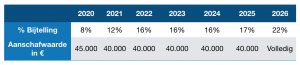 Onderstaand overzicht geeft aan hoe de bijtelling zich in de komende jaren ontwikkelt voor elektrische auto’s: